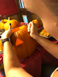 After that, we came back to my house and started cleaning out pumpkin guts. It was messy and took forever. Uncle Jeff did Ruby's pumpkin because I, for some unknown and silly reason, got my own huge pumpkin. Laurie did Jill's pumpkin.