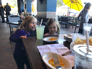 I am trying to decide whether or not Ruby can do The Nutcracker this year so I thought we would try going to a few movies to get an idea of how she does. I picked the girls up around 3 pm and we went to the Studio Movie Grill to see The Addams Family. I don't think Ruby is ready. At a loud, fun kids movie, where we had food, she was still loud and up and down and all over the place. Maggie went to The Nutcracker at two years old and was great, but they are just very different kids.