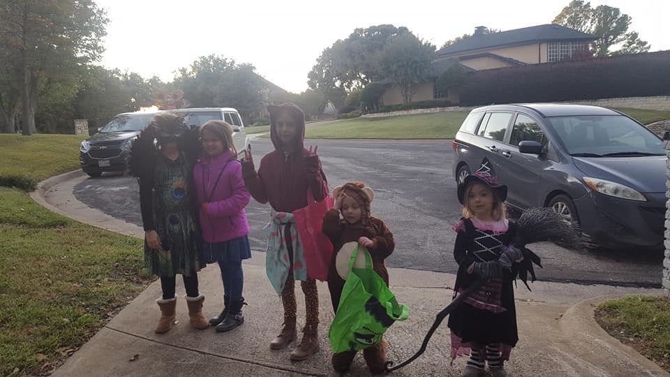 We went out trick or treating. It was me and my girls. Laurie, Jeff, Ella, and Jilli. Ella's friend, Eden, and her mother, Angie. Dad and Joanne. We had a great time. The girls were so excited. No one melted down or otherwise had any issues. It was cold. They got tons of candy.